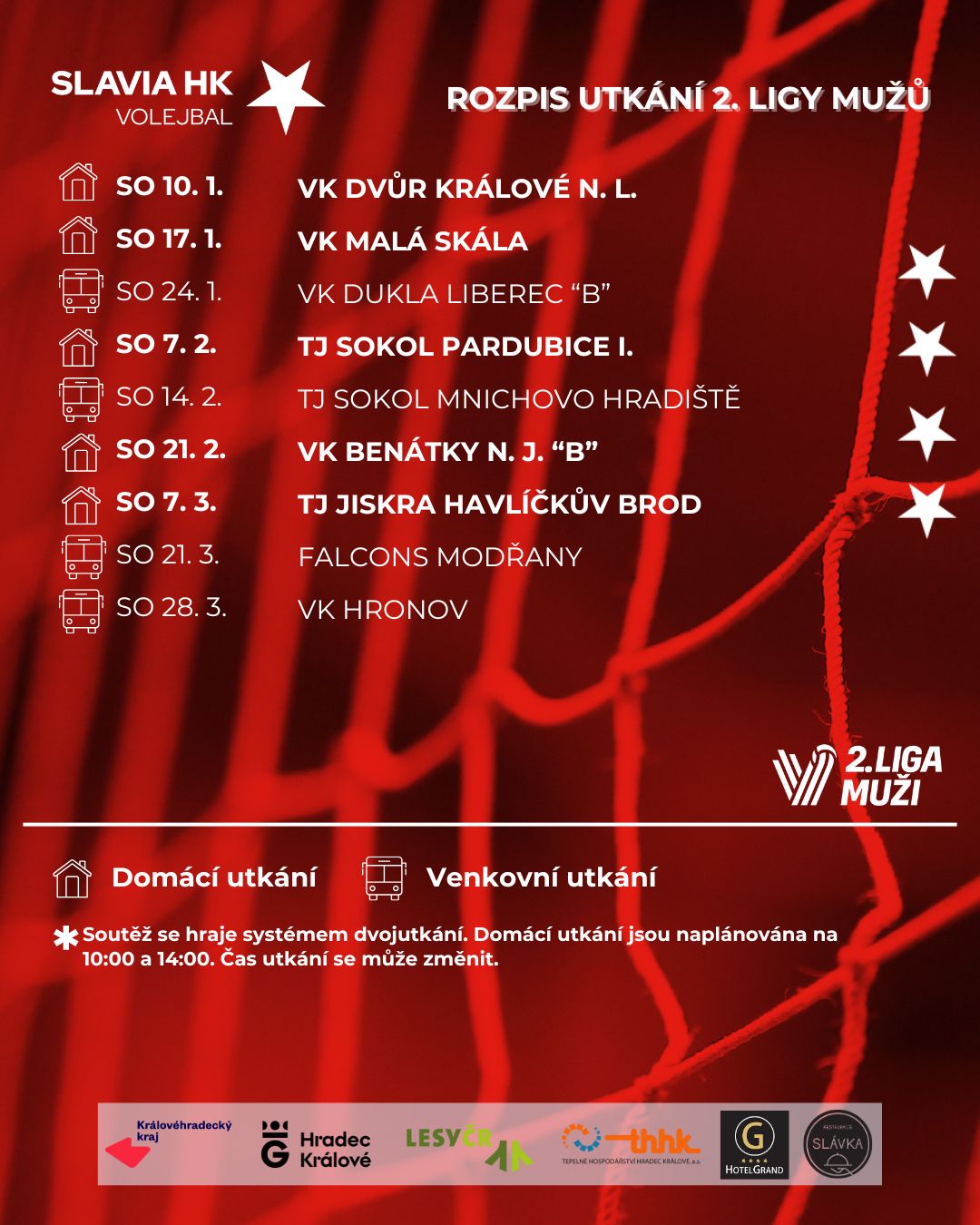 Podpora fanoušků bude klíčová, a proto vás zveme přijít povzbudit tým přímo do haly. Přijďte být součástí atmosféry a pomozte Slavii HK v boji o co nejlepší umístění ve druhé části sezony.